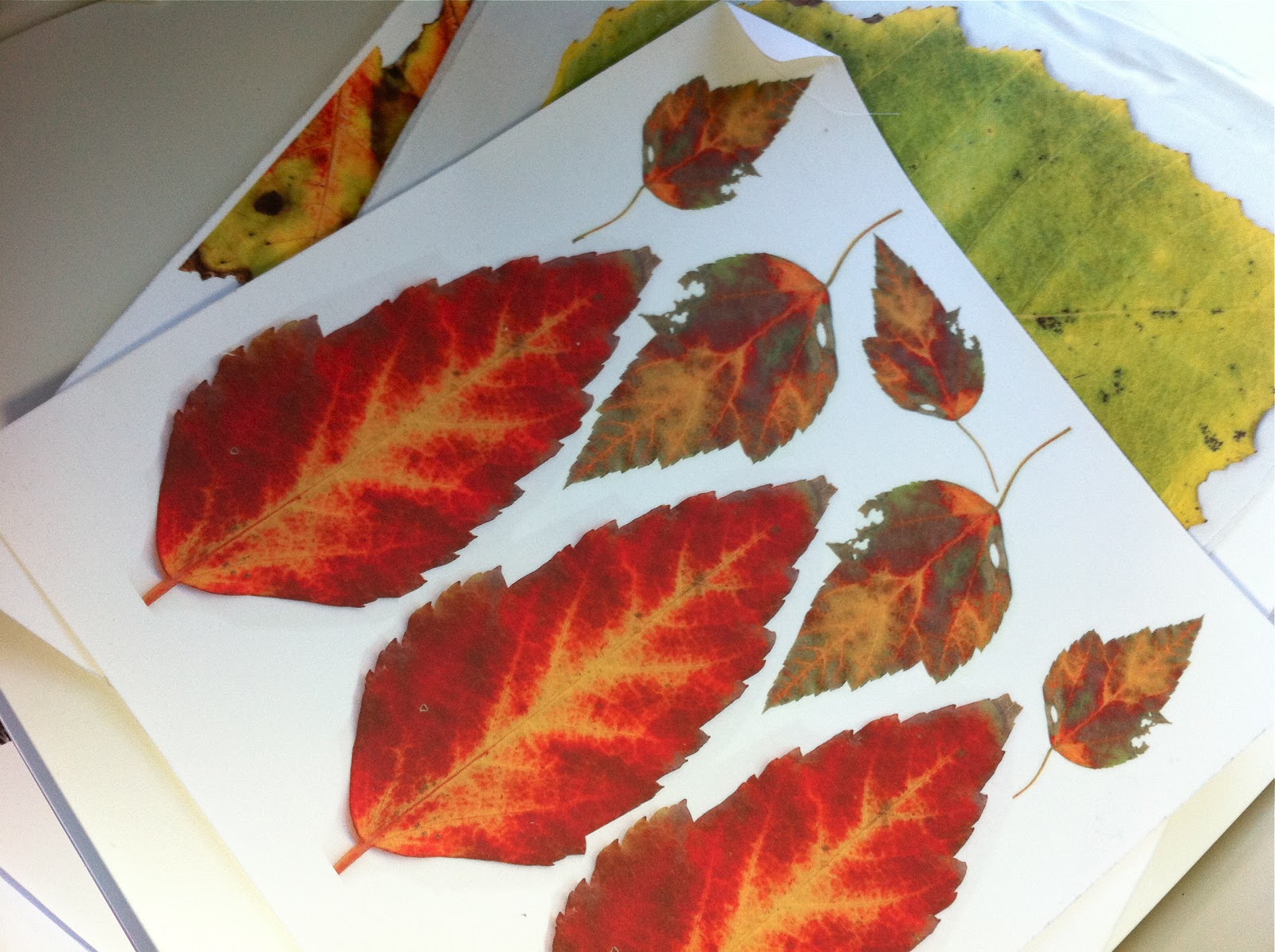 Step one – pick up a handful of irresistibly glorious fall leaves every morning. Scan them at a very high resolution (600dpi).