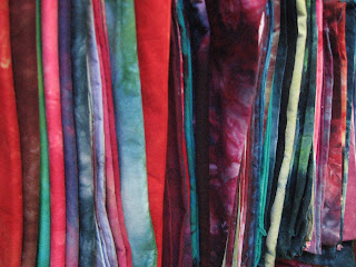 Well, mostly. I wish I had taken more process shots during the dye days but stripping off the gloves, washing off the shoes, grabbing the camera, etc. was just too much work. I “only” got through 100 out of the 150 yards I have available to dye. I did come up with lovely pieces to include in the kits for my students at the Virginia Quilt Celebration. More on that later!
