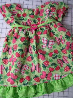 I had enough fabric to make three shorts, two dresses, and two tops for my little girl. The first skirt/dress combo was a disaster. Ugly, ugly, ugly – but she wore it anyway. I made another attempt today. This time doing the ruffles the old fashioned – pull the basting stitches – way. The out of control skirt was trying to use a fancy ruffling foot on my m