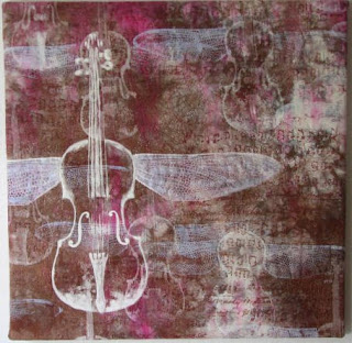 Large violin was screen printed and brush painted.