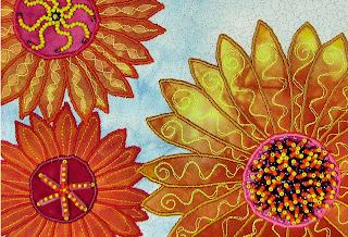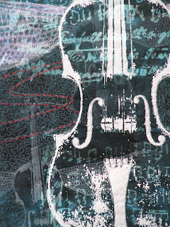 A recent wonderful example of this theme is the soaring violins in Soaring II that was just accepted into ARTSQUILTSIlluminations. When I look at that quilt I think of the actual music soaring through the air and I want to sing along with it. That's a good feeling for someone like me who can't sing (or fly)but likes to pretend I can.
