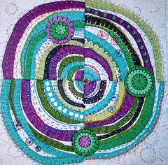 I hope you have enjoyed getting to know Jane and her work a little better. She is a prolific blogger and I encourage you to head over and browse through her work. It’s complex and rich and beautiful. Next week I’ll tell you about some of the amazing work she does in teaching and sharing her creativity. At the end of the month I’ll be giving away a copy of her DVD workshop “Small Art Quilts” to a lucky reader. The winner will be chosen from among the comments left on any one of the artist spotlight posts about Jane – including this one. How about telling me your favorite “creative habit.” Tell me something that helps you get the work done. (Yes, I am struggling with that particular issue right now. Can you tell?)
