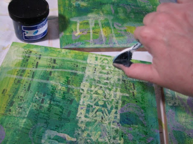 Yes I’m a textile artist but there are times when I long for the almost instant gratification of applying paint to a surface and seeing a thing bloom into being in a fast and furious fraction of the time it takes to meditatively hand stitch my usual work. (boy am I into run-on sentences this morning or what!?) Anyway – Alisa gives you the feeling of permissive freedom to experiment with absolutely anything.