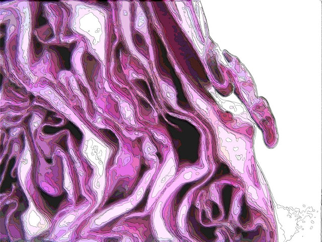 Every once in a while I’ll be working on dinner and something will strike me, capture my attention. There is such beauty in the mundane world. Color, line, form. If you are looking, seeing, you will find it. This day it was a head of red cabbage.