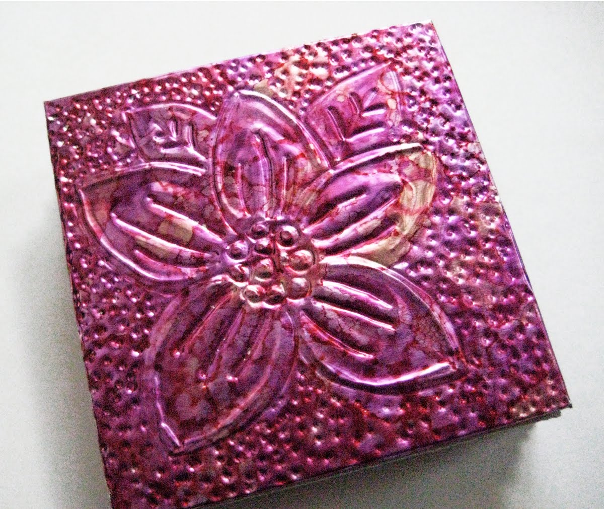 Using aluminum craft metal, simple embossing, alcohol inks and paper we will create a fun little art book, using the fundamentals of origami to create expanding pop up pages. These are so cool, easy to make and they make awesome little gifts.