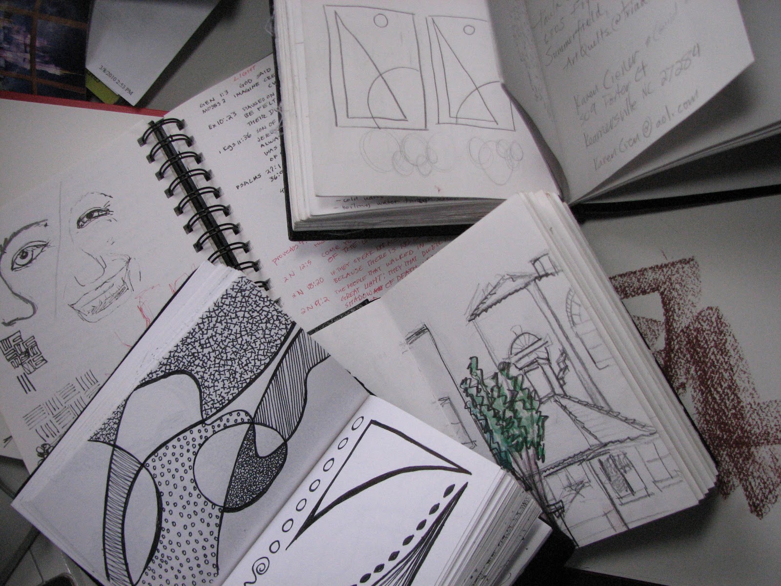 These books are filled with doodles, drawings, composition studies, grocery lists, exercises, and nothing in particular. They are one of my favorite resources for new ideas. If I don’t jot down ideas immediately they simply evaporate into the ether that is between my ears. I love these books. I’ll never leave them.