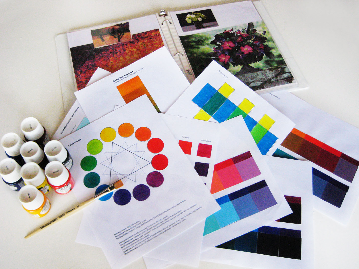 The class website is designed for students to work at their own pace with each lesson accessible at any time. The lessons include color diagrams and examples with explanations of the different principles for working with color. After each lesson you will blend colors and paint swatches of color to make a chart to fully understand each weeks lesson.