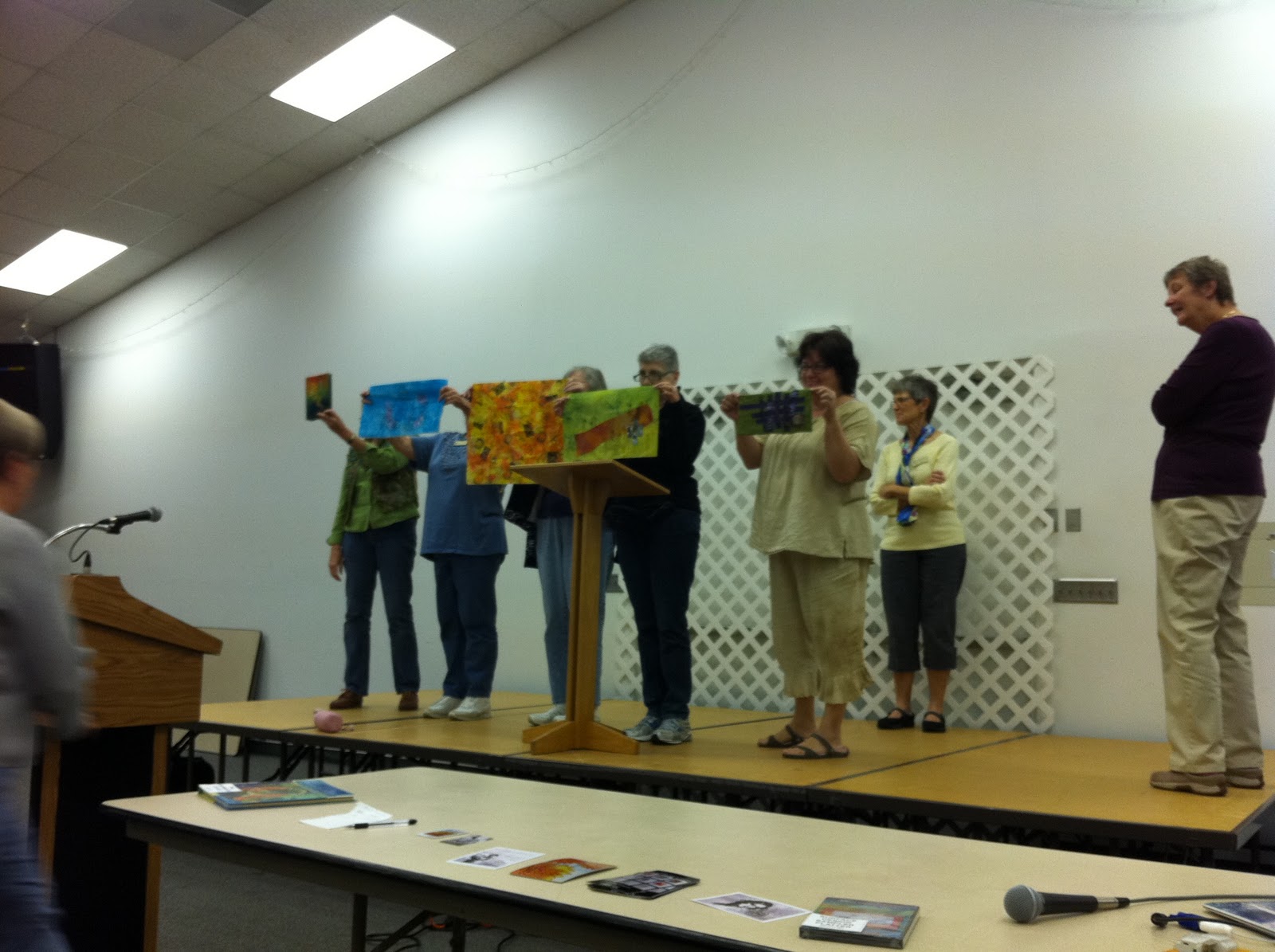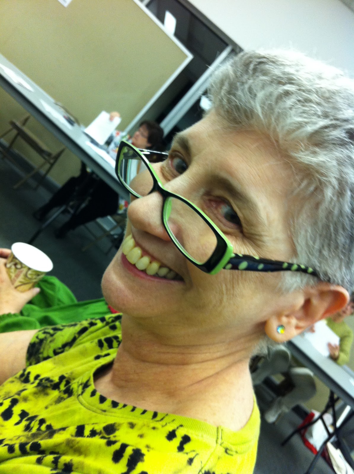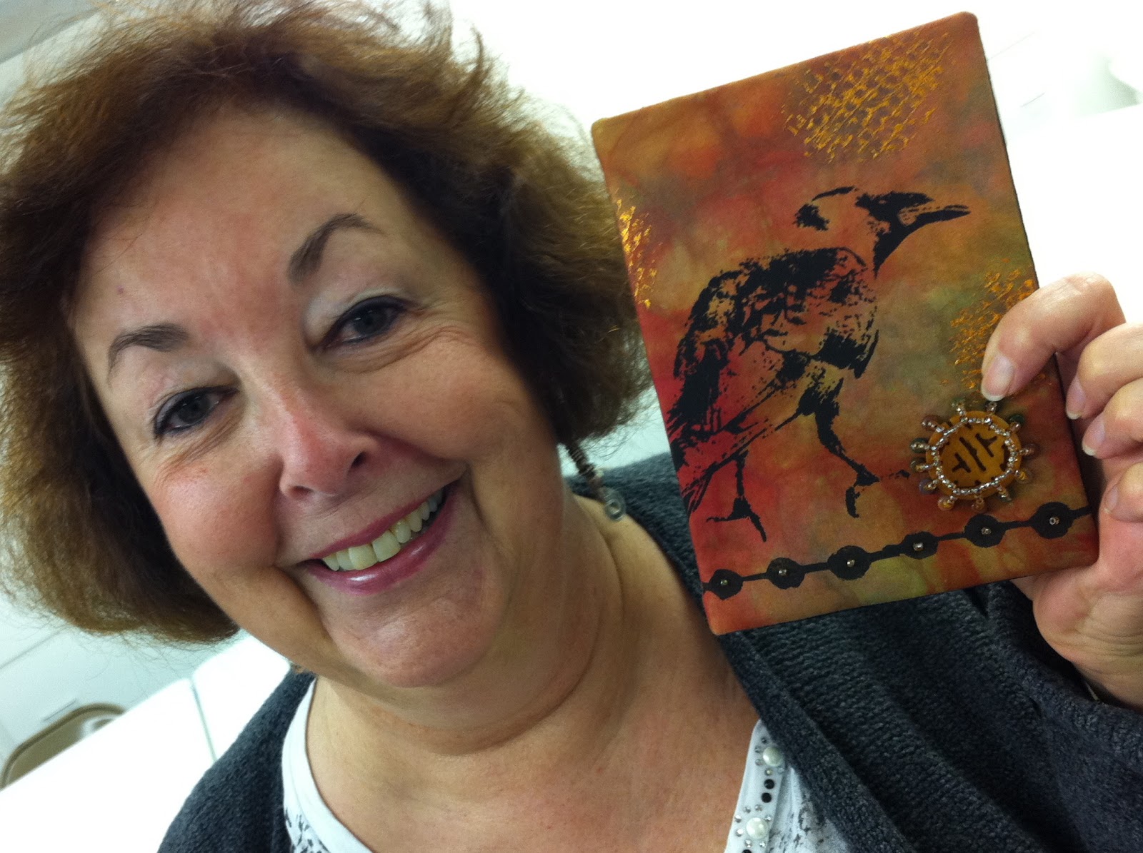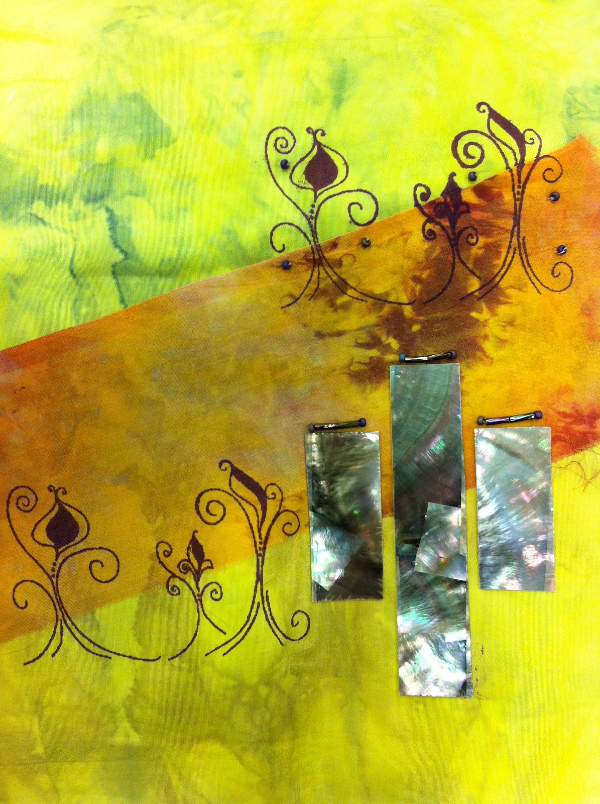 We had a blast (and exhausted ourselves!) learning a bajillion different surface design techniques in Surface Design Sampler Platter. We laughed and worked through carving stamps, thermofax screen printing, photo transfer, stenciling, and even beading!