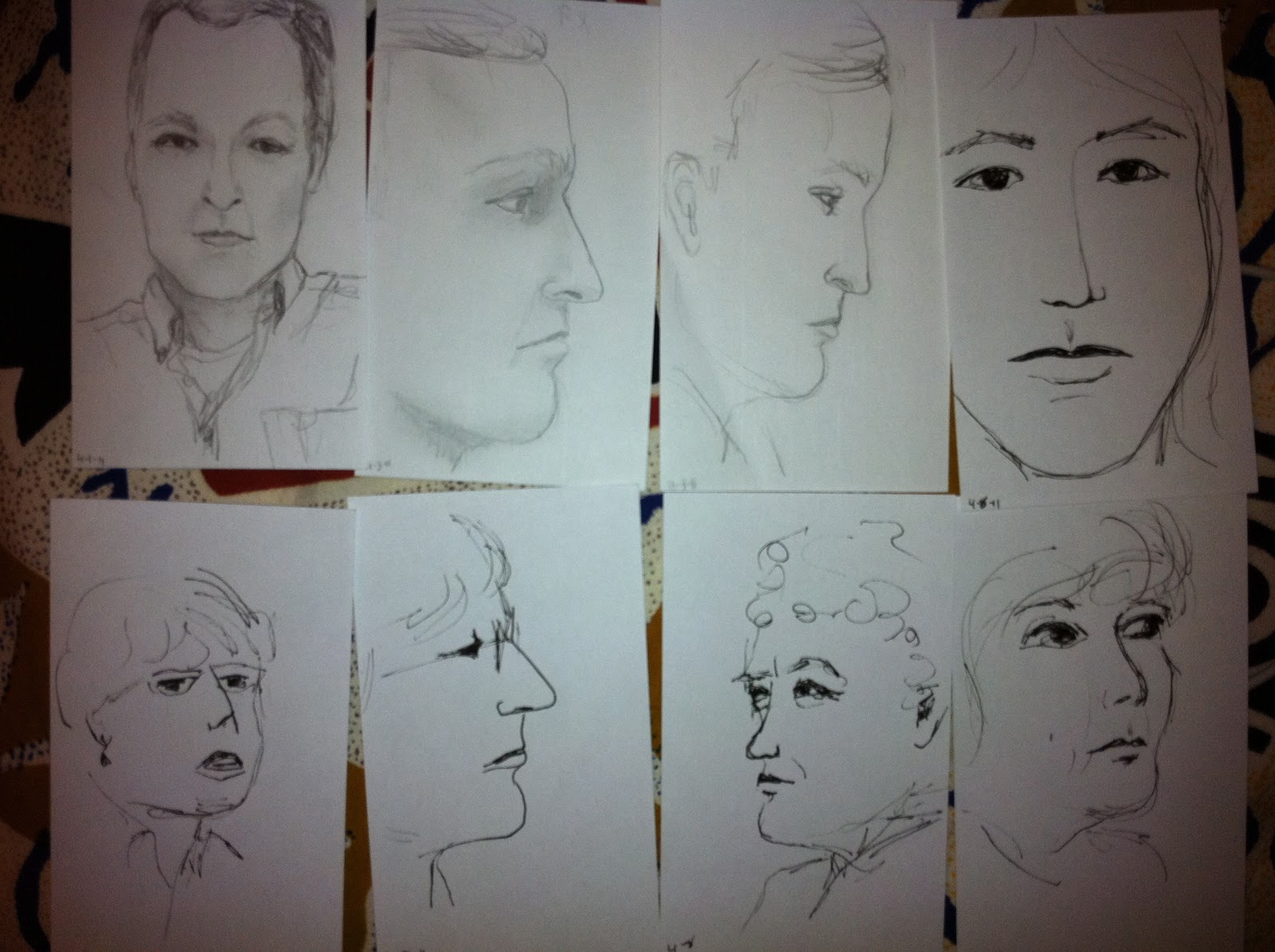 The first three are all drawings of my beloved Mr. Almost Perfect. The second looks closes to him – I worked and reworked his nose and think I finally got close to getting it right. Most of the rest are very quickly done – 30 seconds or so.