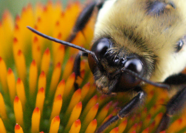 Beautiful photos! I love the big fuzzy bees — they look almost pettable. I have a similar camera and I've taken numerous photos of my garden bees, but I don't think I get such spectacular results.
