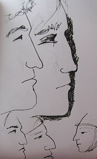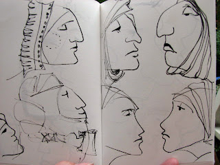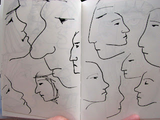 June 11, 2011 at 5:34 pmThanks I needed that. I decided to challenge myself with one face a week, as it would be easier to do than one a day with my 55 hour work week! Even with that realistic goal there was a two week lag and I drew more faces to repay my goal back when I had a day to myself. What has happened to me now is that I look at faces much more often with detailed interest in line and shading. I'm also looking at artist's portrayal of faces in my children's literature with renewed interest. I recently read somewhere that another artist does a hand a day to get better at drawing those. I'm liking how you're showing much more gesture and expression in your faces lately. Thanks for writing in where you drew from photos, imagination or real life. This is very informative for me so I can see how you're approaching your subjects. This is fascinating Lyric. I've moved away from memo cards and my faces are on everything from scratch paper when out to inside my journals. My stack of memo cards is at the ready though for those moments when I'm inspired!
