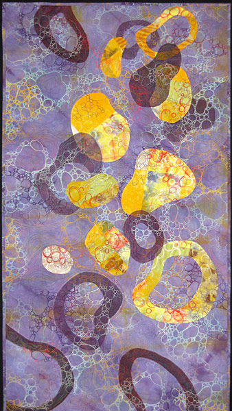 San Antonio artist Leslie Tucker Jenison is inspired by the textural beauty found in the patterns of natural and man-made environments. Leslie loves the tactile experience of working with cloth and paper. Using dye, paint, and thread, Leslie creates unique imagery on these surfaces. The juxtaposition of the macro to microscopic world is a recurring theme in her work. Long fascinated by the historical connection of quilts and the people who make them, she serves on the board of the Alliance for American Quilts. Leslie exhibits internationally in galleries and juried exhibitions. Her work is held in both corporate and private collections. Leslie teaches a variety of quilt and mixed media workshops. She curates exhibitions and teaches as one half of Dinner At Eight Artists along with Jamie Fingal.