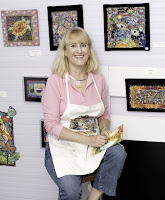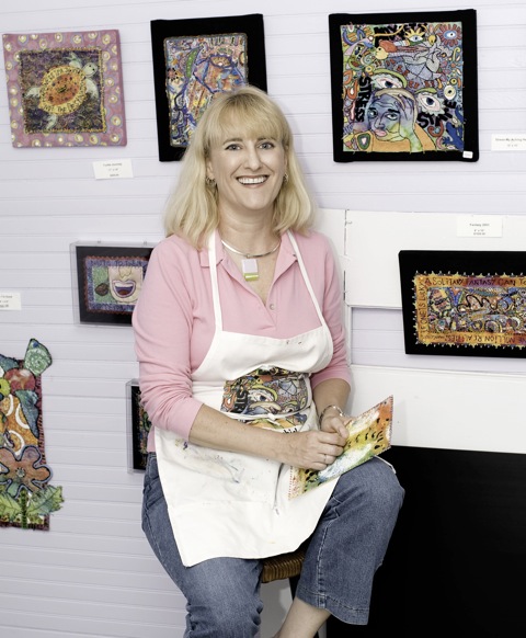 Being around children was a great way to get her creative juices flowing, so she quit after 12 years and became a full time artist. Susan calls herself a “mixed media” artist, since she likes to dabble in a lot of different medias. She has been working with textiles since 1998 and hasn’t tired of it yet.