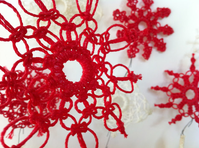 macrame snowflakes made by my mother,  Lynn Montgomery