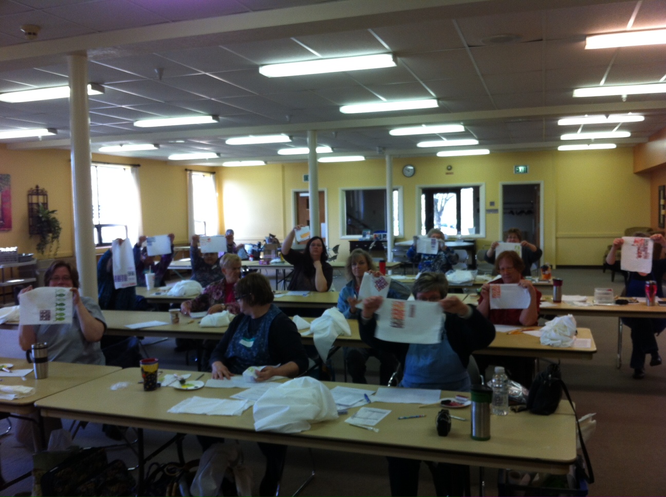Step on in and take a peek at the wonderful day of playtime fun we had with the West Michigan Quilter’s Guild in Grand Rapids. Surface Design Sampler Platter is a crazy class – six surface design techniques in six hours. It’s a mix of kindergarten playtime with a little touch of insanity thrown in.
