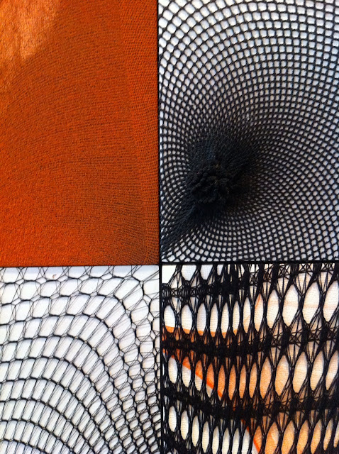 I failed to get the name and title for this piece but I LOVE it! This is a detail – four canvases wrapped in different stockings to create a lovely pattern. Scroll back up to the first picture and take a look – it’s partly behind the door.