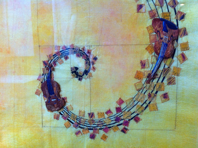 They have also had several events where artists have been invited to come and draw during live rehearsals of the Brussels Chamber Orchestra. Unfortunately my kids schedule got in the way. It sounds wonderful. One my favorite exercises from Art + Quilt is to doodle to music either with pen and paper or with free motion quilting.String Quartet (fiber) by Ana Sumner