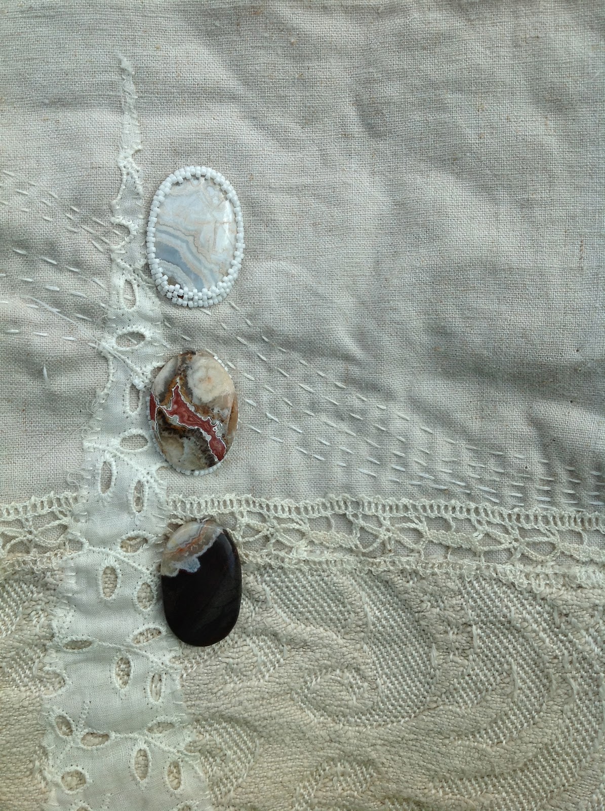 These are going to come off too… (I just remembered that I left this in the glove box of the car we drove – I’d better go get it before I forget it again). I think it’s the beads themselves I’m not liking – there are such beautiful markings on these stones that the beaded bezel is competing with them.