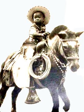 It’s a common problem when trying to transfer photos of any dark skinned person. This little cowboy also has an awful lot of stuff to compete with in the background of his photo. I deleted the background then selected certain areas such as his face to boost more or less than other areas. Now that I’m looking at it I see that I’ve blown out (made too bright) all the detail in his chaps.