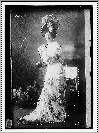 Now choose Select then Invert to switch your selection back from the background to your figure. Why do so, you ask? Many times there is more or less light and detail in the figure than the background and they might need quite different levels of adjustment in order not to lose details you want to keep.