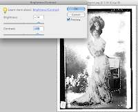 I do love the photo just as it originally is – with all of it’s dust speckles and such, but that much dark ink might not be wanted. We talked in part 2 about isolating your figure, but what if you want to keep some of the background. Choices, choices. I’ll show you a few very useful tools that will help you lose some if the darkness of the original photo if that’s what you choose to do.
