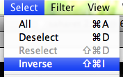 Now you have a lovely flashing line around your image. Find the Select drop down and choose Inverse (shift-control-I). This will choose everything around your image. You’ll see two flashy dotted lines now.