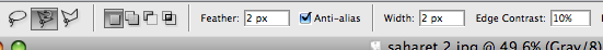 Next move over to Feather and decide how fuzzy you want your edges to be. The larger the number you choose here, the more pixels will be included in a fuzzy line around your image. I think I want the edges to be fairly sharp so I’ll choose 2 pixels and a width of 2px. Anti-aliasing will make pixelated curves appear sharper so it’s a good idea to leave that box checked. Edge contrast makes the dark side of your edge darker and the light edges lighter – again increasing sharpness.