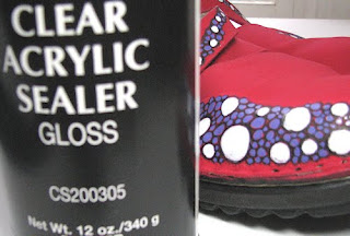 You’ll need: shoes, fingernail polish remover, gesso, acrylic paint, spray sealer. Optional – sharpie, paint markers.