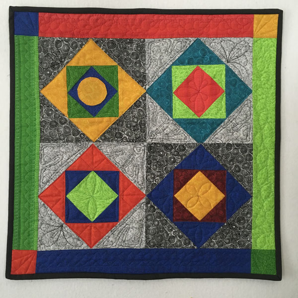 This was a “fun” project so I had no real interest in carefully planning ahead. The only requirement was for the finished quilt to be 18″ square.