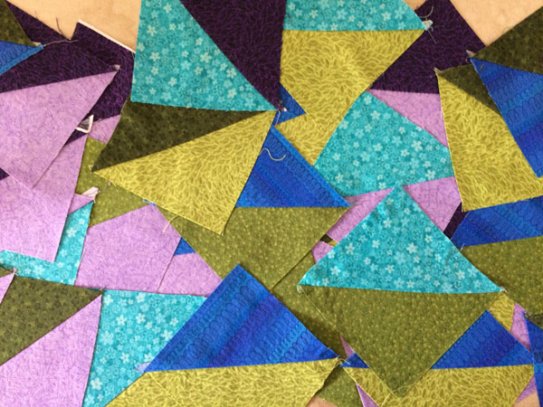 A few squares and a few seams later I had a big stack of mostly good half-square triangles. Piecing is definitely not my forte´but every once in a while the mindless repetition is a nice way to meditate along to the hum of a machine.