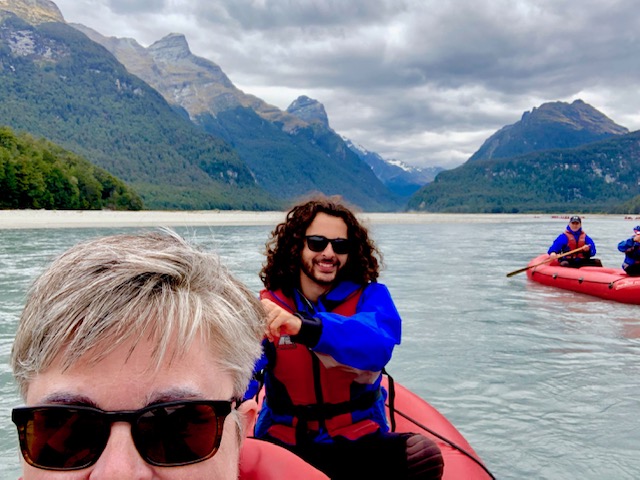 We caught the bus and rode up around the beautiful and long lake Wakapitu to Glenorchy and got all kitted out in fleece, wetsuits, jackets and life vests for a day on the Dart River. It’s pretty cool that we have fabric technology that will keep us warm in this cold water.